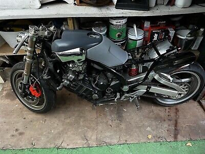 Thanks for looking. Yamaha fzx 750 or whats left from it see on pictures. Loads mods was done. Original frame and engine us a spare with v5 log book. Needs wiring and loads to do till finish it. so for parts or if you have time put all together will be nice looking project.
