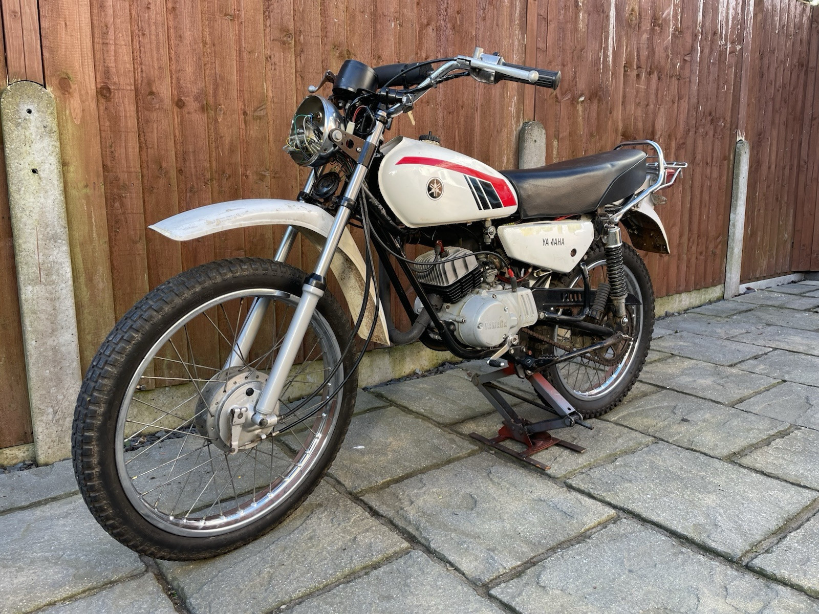 He we have for Auction is my DT50m 1979. Suitable for spares only .Please study the photos as they serve as a description it is mostly complete all I can see missing is the air box and the indicators the ignition switch is broken as is the headlight. The wheels are in good condition as are the forks Stanton’s